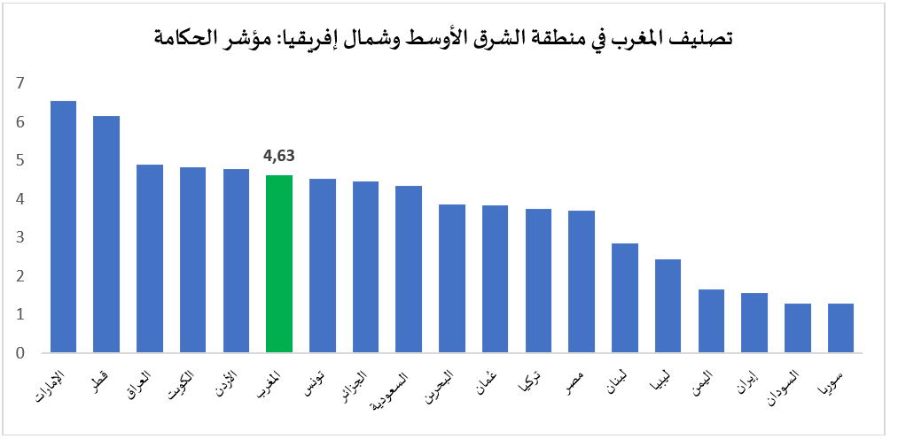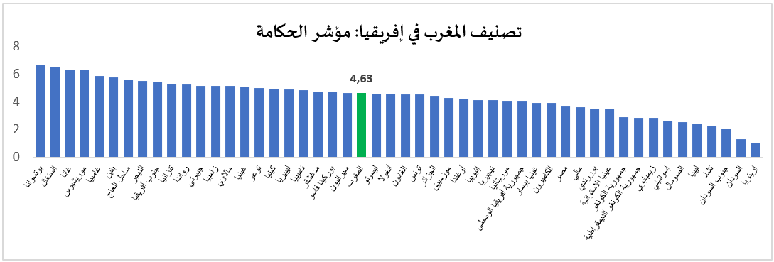 أما في مؤشر الحكامة، فيتموضع في المرتبة 69 عالمياً، و23 إفريقياً، و6 إقليمياً ضمن دول منطقة MENA؛